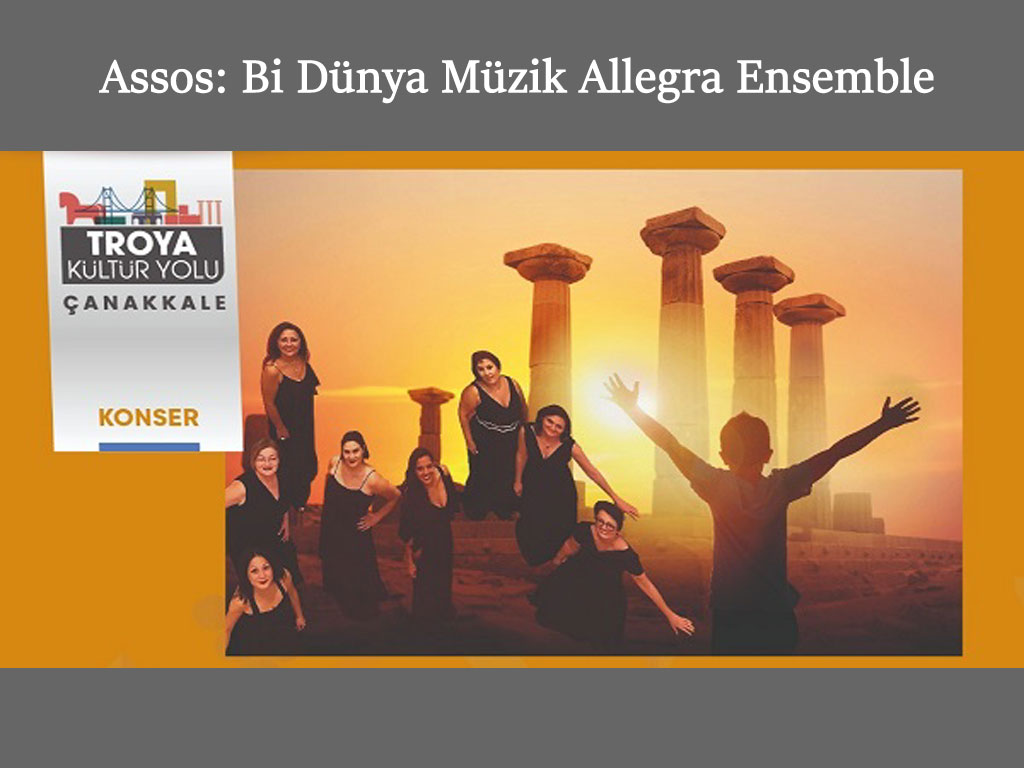 Kendi kültürümüzden kopmadan türküler, dünya müziğinin seçkin örnekleri ile tangolar, müzikaller, fadolar, şansonlar ve klasik caz parçalarını; klasik müzik enstrümanları ile çok sesli icra eden Allegra Ensemble Assos antik kentinde tarihin aşk, kahramanlık ve uygarlık yuvası olarak tanımladığı Troya’nın ruhunu yansıtan eserlerle sahnede olacak.