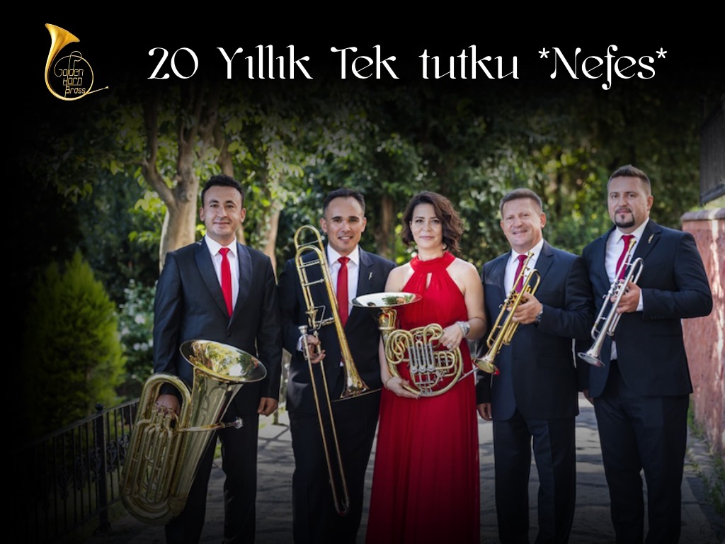 Julian Lupu (Trompet), Renato Lupu (Trompet), Begüm Soydan (Korno), Emre Berbergil (Trombon) ve Sinan Şirin (Tuba)’den oluşan Golden Horn Brass Müzik Topluluğu, 4 Ekim 2025 Cumartesi günü gerçekleştireceği 20. yıl kuruluş konserinde, Türk bestecilerinin unutulmaz eserlerinden, film müziklerine kadar uzanan klâsik ve enerjik bir repertuarla, yüksek teknik ustalığı ve sahne etkinliğinin ön plana çıkacağı bir konser icrasıyla 20. yılını dinleyicileri ile kutlayacak!