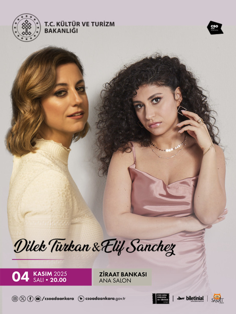 Dilek Türkan ve Elif Sanchez Ankara’da 4 Kasım 2025 Salı günü CSO Ada Ankara Ziraat Bankası Ana Salon’da müzikseverlerle buluşmaya hazırlanıyor. Dilek Türkan’ın zarif yorumları ve Elif Sanchez’in etkileyici vokali, geleneksel Türk müziği ile cazın özgür tınıları ile bir araya geliyor.