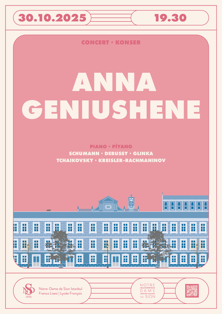 Notre-Dame de Sion Fransız Lisesi, NDS gösteri salonunda 30 Ekim 2025 Perşembe akşamı saat: 19.30'da, sezon açılış konseri olan Anna Genıushene piyano konseri gerçekleştirecektir.