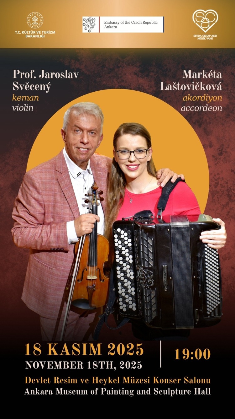 Çek Cumhuriyeti Ankara Büyükelçiliği ve ülkemizde çoksesli müziğin tanıtılması ve yaygınlaştırılması için kurulmuş olan ve Başkent Ankara’nın kültür ve sanat hayatının zenginleştirilmesine hizmet eden Sevda-Cenap And Müzik Vakfı işbirliğinde Kültür ve Turizm Bakanlığı desteğiyle Çekya’nın önde gelen keman sanatçısı Prof. Jaroslav Svěcený ve akordeon sanatçısı Markéta Laštovičková’nın seslendireceği Latin Melodileri ve Ritimleri Gala konserine ev sahipliği yapacak.
