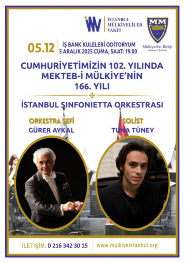 166 yıllık tarihinde, Türkiye'nin yönetim ve diplomasi kademelerine yön veren, düşün dünyasını şekillendiren ve toplumsal sorumluluk bilinci taşıyan sayısız Mülkiyeli yetiştiren Mülkiye camiasının kültür-sanata verdiği önem ve destek bu etkinlikle öne çıkıyor. İstanbul kutlamasındaki bu konser, Mülkiye'nin tarihsel misyonu ile çağdaş sanat anlayışını buluşturan simgesel bir nitelik taşıyor.