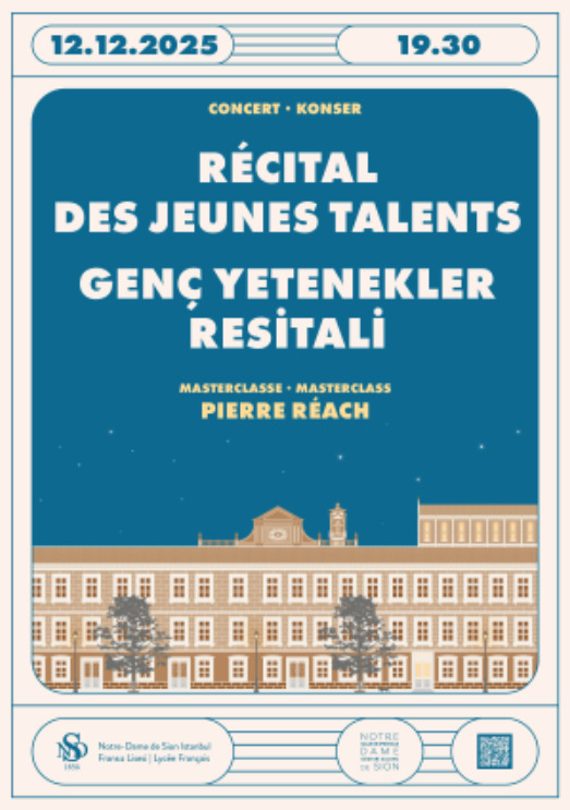 Notre-Dame de Sion Fransız Lisesi, NDS gösteri salonunda 12 Aralık 2025 Cuma akşamı saat: 19.30'da, Genç Yetenekler Kapanış Resitali konserini gerçekleştirecektir.