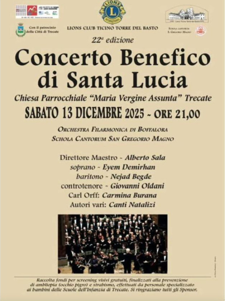 Konser için dileyicilerden toplanan bağışlardan elde edilen gelir Trecate’deki anaokullarında okuyan çocuklar için ambliyopi taramalarında harcanacaktır.