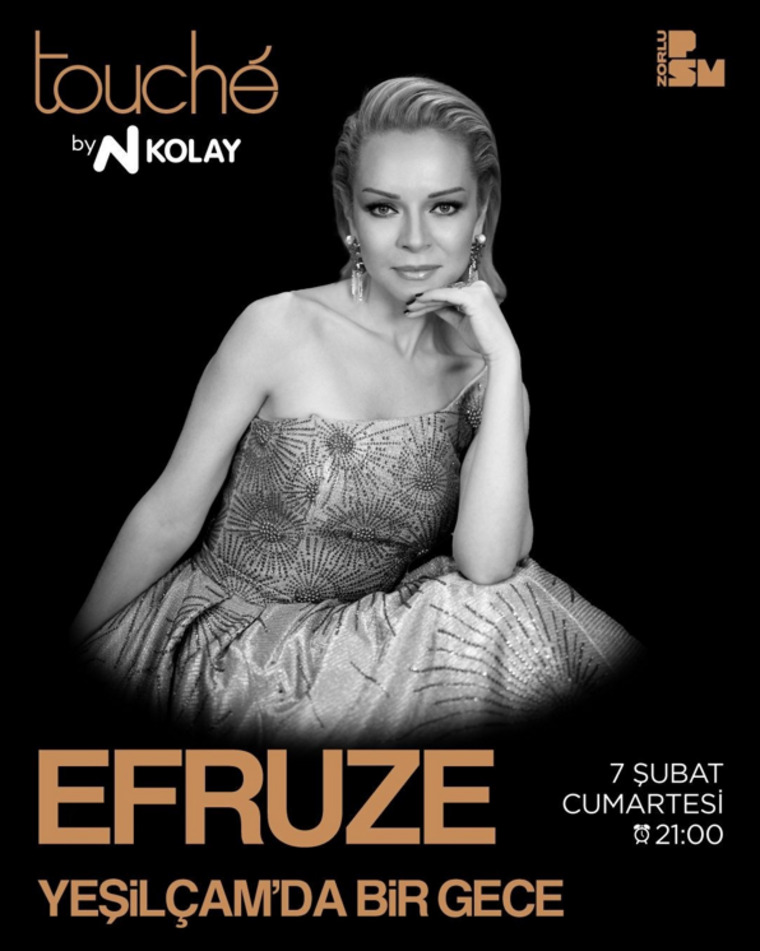 Türkiye'nin yeni nesil assolistlerinden Efruze, "Yeşilçam'da Bir Gece" projesiyle 7 Şubat 2026 Cumartesi günü saat:21.00’de Zorlu PSM Touche by N Kolay sahnesinde izleyiciyle buluşuyor. Yeşilçam sinemasının hafızalara kazınan şarkıları, bu özel gecede Efruze'nin zarif yorumu ve sahne diliyle yeniden hayat bulacak.