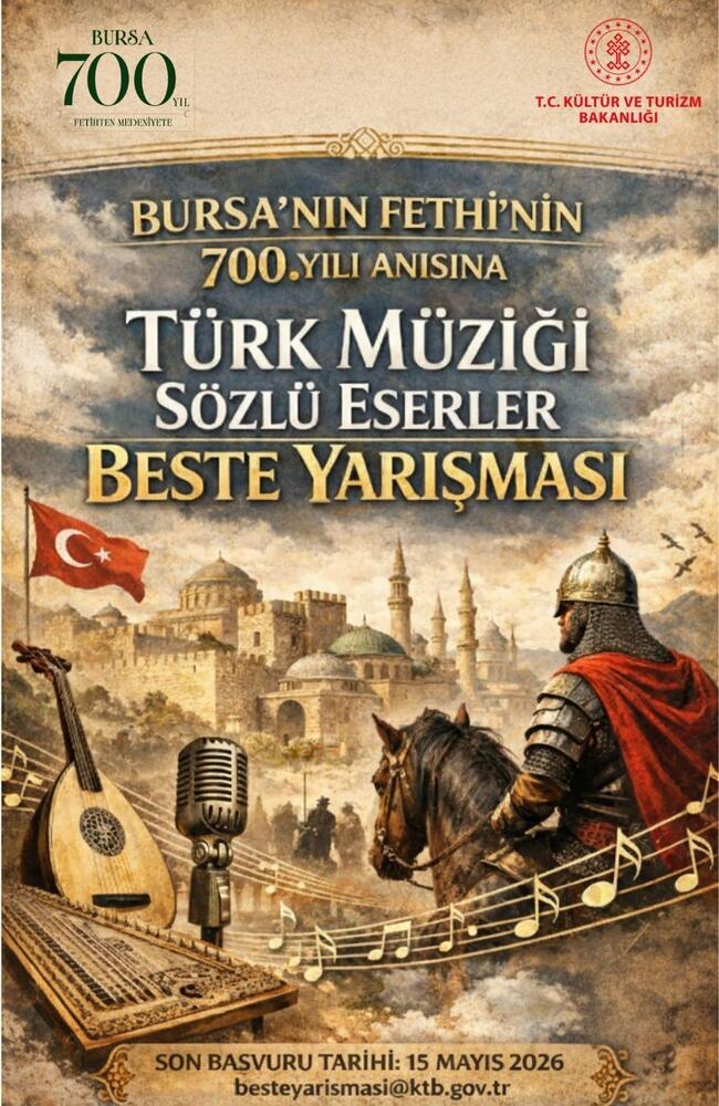 Türk Klâsik Müziği’nin en önemli özelliklerinden makâm ve usûl zenginliğini canlandırmak, bestecileri nispeten az kullanılan makâm ve usûllerde beste yapmaya teşvîk etmek ve repertuara yeni ve nitelikli eserler kazandırmak amacıyla Güzel sanatlar Genel Müdürlüğü tarafından düzenlenen Bursa’nın Fethi’nin 700. Yılı Anısına “Türk Müziği Sözlü Eserler Beste Yarışması” başvuruları başlamıştır.