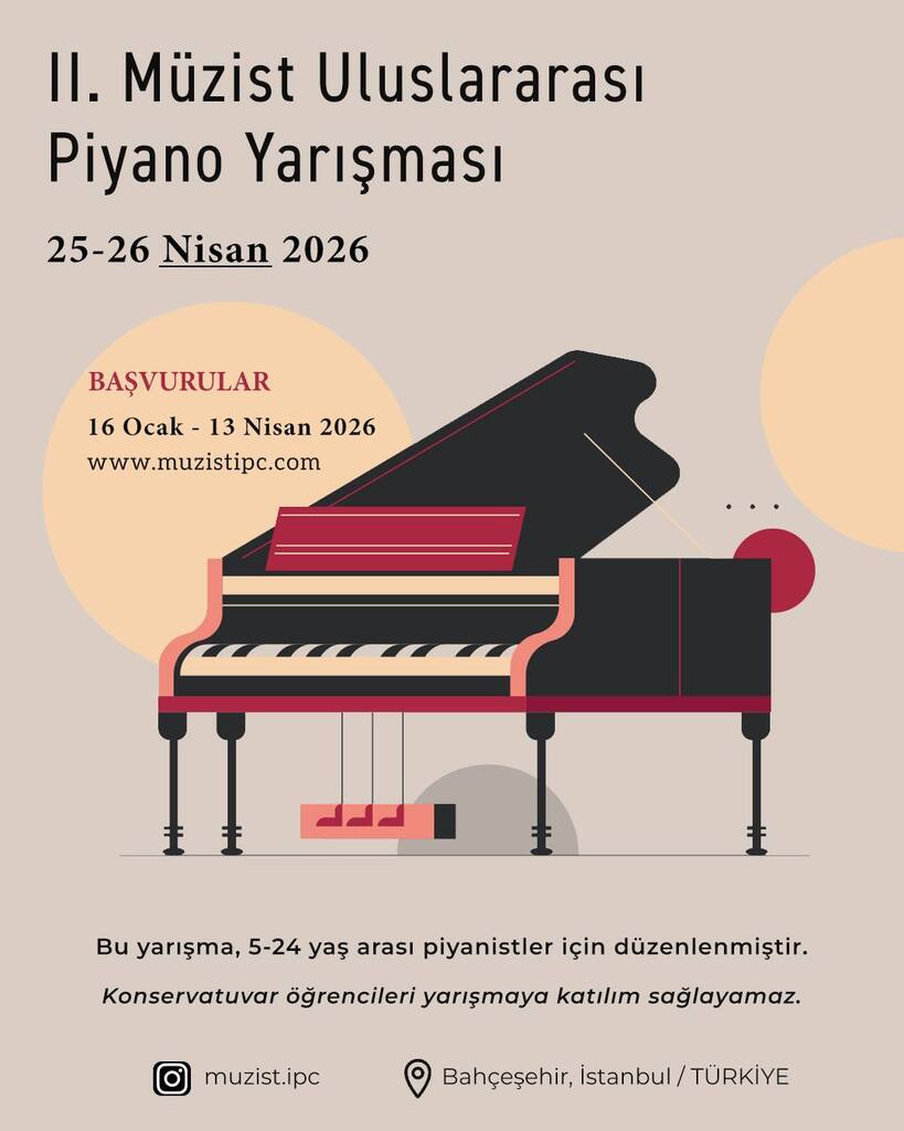 Müzik öğretmeni, piyanist ve besteci Açelya Ülgenay tarafından kurulan Müzist Sanat Merkezi tarafından 23 Nisan Ulusal Egemenlik ve Çocu Bayramı’na özel olarak düzenlenen “Müzist Uluslararası Piyano Yarışması" şartnamesi açıklandı.