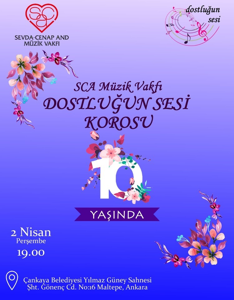 Şef Zuhal Kaynar yönetiminde 2016 yılında kurulan SCAMV Dostluğun Sesi Korosu 10. yaşını kutluyor. 2 Nisan 2026 Perşembe günü saat 19.00’da Çankaya Belediyesi Yılmaz Güney Sahnesi’nde gerçekleşecek olan 10. yaş günü konserinde Şef Zühal Kaynar yönetimindeki SCAMV Dostluk Korosu'na piyanoda Elvan Uluçınar eşlik edecek.