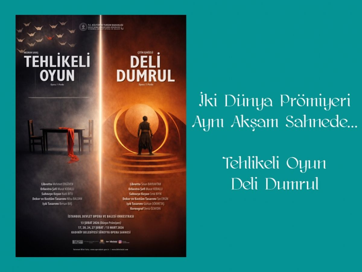 İstanbul Devlet Opera ve Balesi, aynı akşam iki çağdaş opera eserinin Dünya Prömiyeri’ni sahneye taşıyor. Sanatseverler, 13 Şubat 2026 tarihinde, Kadıköy Belediyesi Süreyya Operası Sahnesi’nde bu güçl...