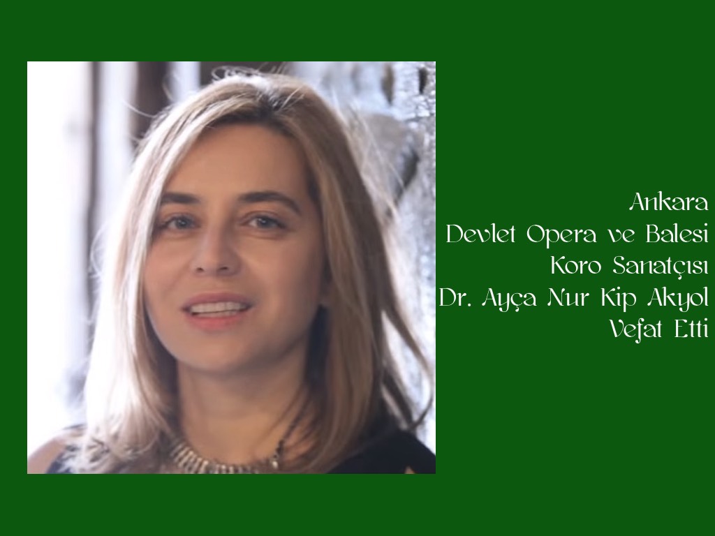 • Ankara Devlet Opera ve Balesi koro sanatçısı, Devlet Opera ve Balesi Genel Müdürlüğü Koordinasyon ve Telif Hakları Koordinatörü Dr. Ayça Nur Kip Akyol bugün Ankara’da 51 yaşında vefat etti!